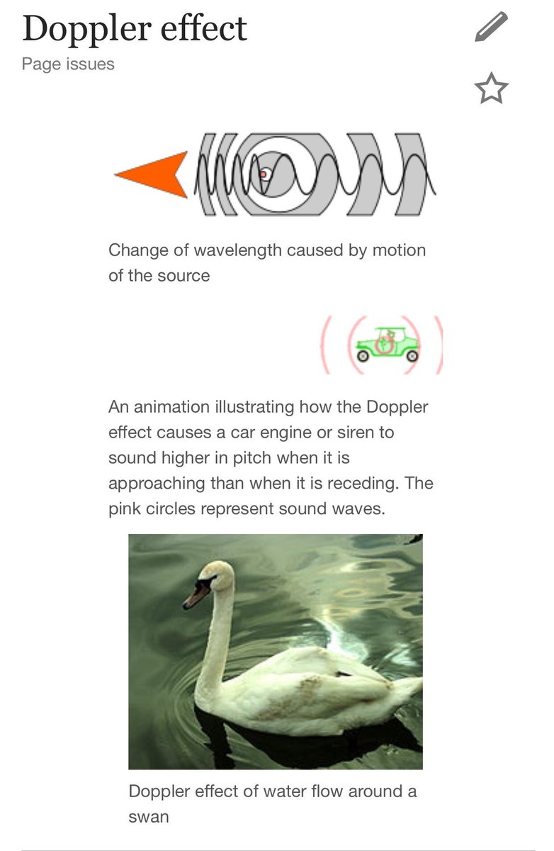 方舟子 ?@fangshimin Apr 24 英文维基的“多普勒效应”举的例子是天鹅游水,所见略同啊。听说科骗们又成了物理大师,力证鸭子游水不会产生多普勒效应?他们又得去修改英文维基了。热爱科学,远离“科学公园”。https://pbs.twimg.com/media/Cg2UD84UkAAZt_M.jpg