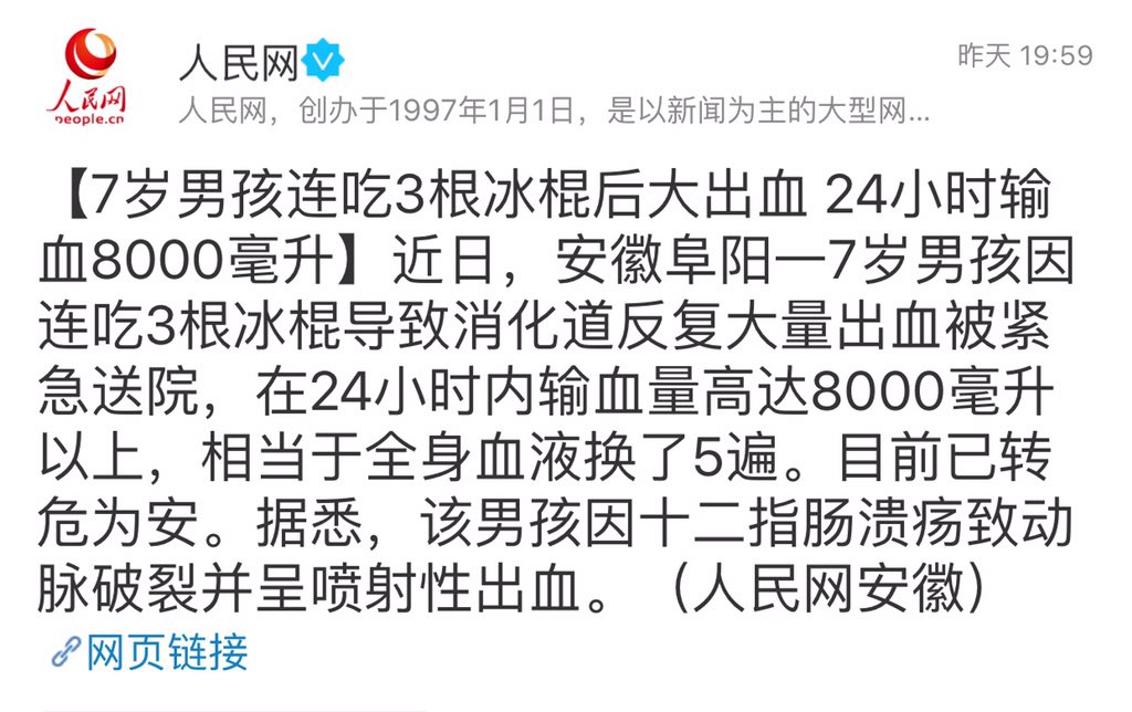 方舟子 ?@fangshimin Apr 22 肯定有中医要举这个例子告诫小孩别吃冷饮。 || @lw56102: 十二指肠溃疡的最主要病因是幽门螺杆菌,和吃冰棍没什么关系。小孩严重口渴,可能吃冰棍之前就已经有出血,只是没吐出来。口渴可能是休克的表现。https://pbs.twimg.com/media/CgoOTE8UgAQtjrz.jpg