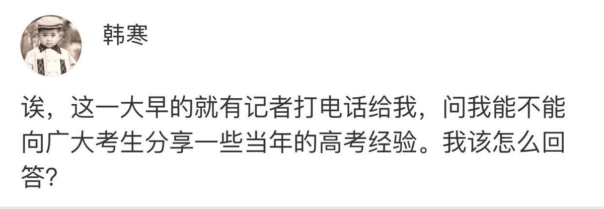 方舟子 ?@fangshimin Jun 7 小韩寒把电话交给老韩寒就可以回答了。https://pbs.twimg.com/media/CkVfD80UgAAR-mc.jpg