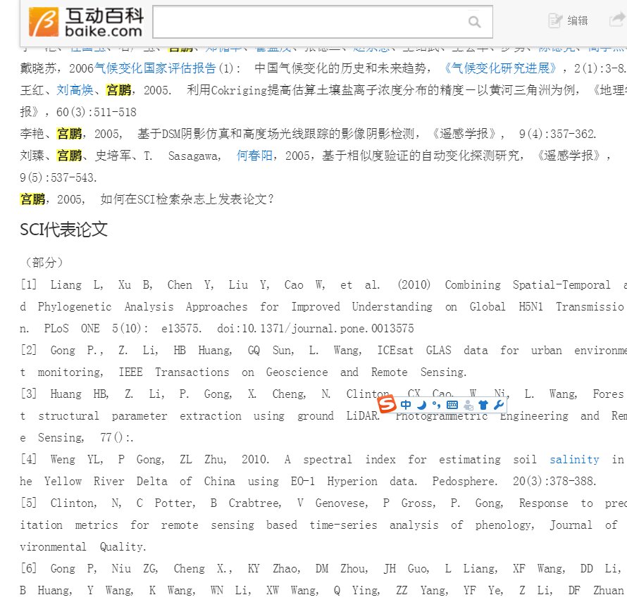 方舟子 ?@fangshimin Jun 6 清华大学地球系统科学教授宫鹏火速把简历中“SCI论文”改成了“SCI检索到的论文及评论”,为了保护3篇《自然》读者评论不惜自贬200篇真论文。幸好我截屏了而且有谷歌快照可证。唐骏事件后高管纷纷改学历,苗鑫事件后教授纷纷改论文记录。https://pbs.twimg.com/media/CkRgm1WUgAI7pey.jpghttps://pbs.twimg.com/media/CkRgm4cVAAAE1YA.jpg