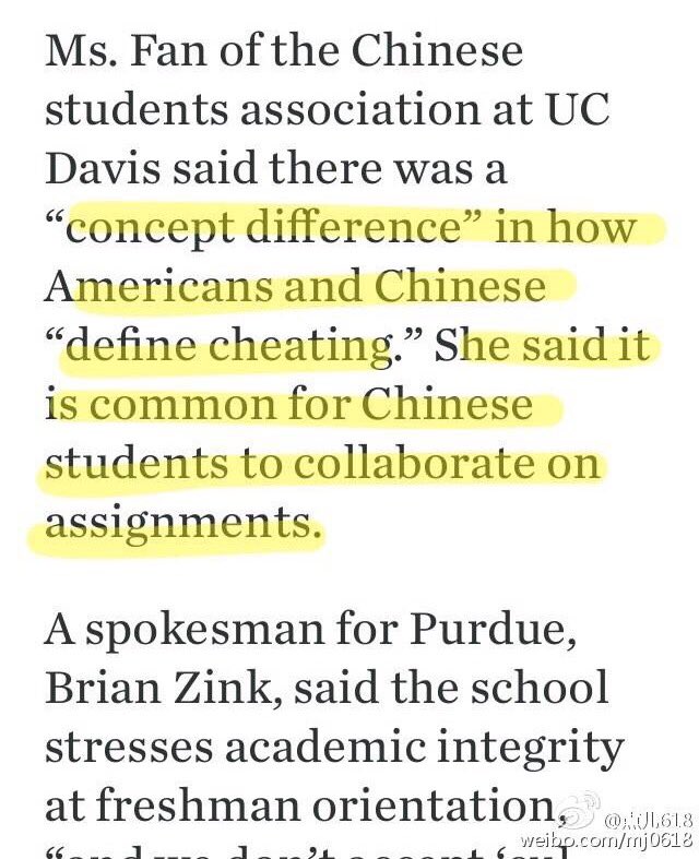 方舟子 ?@fangshimin Jun 9 加州大学戴维斯分校中国学生会的人说中美关于作弊的定义不同,这不是让美国学校要把中国学生都当成潜在的作弊者嘛。https://pbs.twimg.com/media/CkfbNJOWEAEscvf.jpg