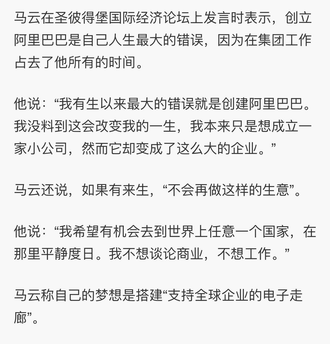方舟子 ?@fangshimin Jun 21 听说马云说创立阿里巴巴是其有生以来最大的错误。要纠正这个错误很容易,把阿里巴巴关了、卖了、送了都可以。https://pbs.twimg.com/media/CliGlH3UsAAr_D8.jpg