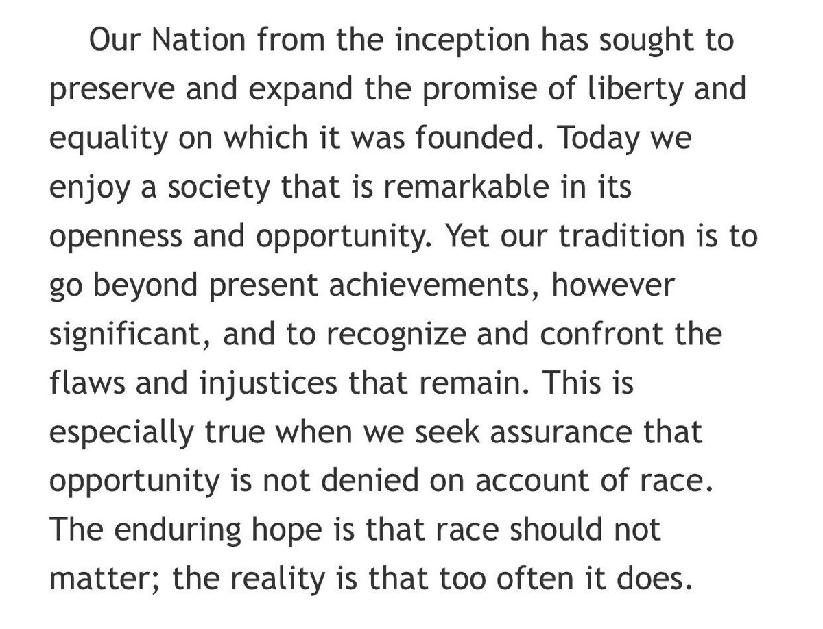 elalemitbbs ?@elalemitbbs Jun 27 @fangshimin 有些诛心呀,老方。那个是twitter字数不够,所以连之前的几个单词都删除了,我认为大家应该都知道他说的”racial balancing”都是违宪的,所以那个限定词也一块儿删除了。如果真要误导,何苦还要用省略号和保留引号呢?另外,该法官在那判决中是多数派