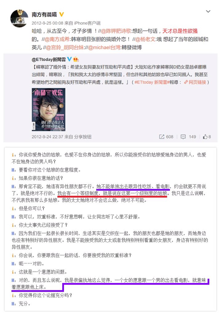 方舟子 ?@fangshimin Jun 29 韩粉遵循了小韩寒的指点。@qinlaoshidian