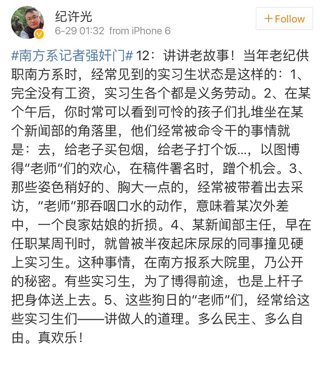 方舟子 ?@fangshimin Jun 29 只要实习生认为违反其意愿就是强奸。@Amy7Lin 突然好奇,记者诱奸实习生如果发生在美国会被判定强奸吗?
