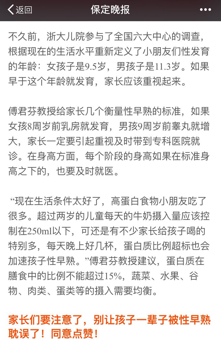 方舟子 ?@fangshimin Jul 9 女孩性早熟就怪牛奶里的雌激素,男孩性早熟就怪牛奶里的蛋白质,在中国医生眼中,不管男女牛奶都是性早熟之源。https://pbs.twimg.com/media/Cm-leSNUsAED7TR.jpg