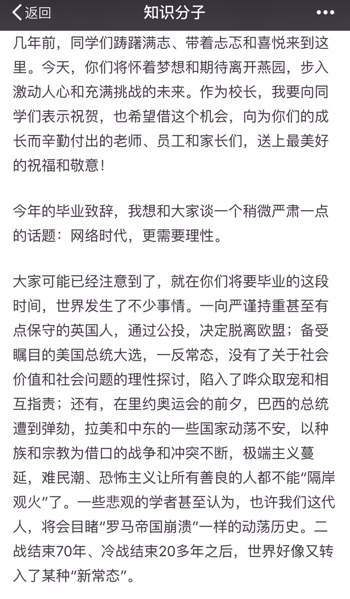 方舟子 ?@fangshimin Jul 7 北大校长胸怀祖国放眼世界,世界问题真真假假讲了一堆,祖国问题一句不提,也许要培养的就是这样的学生。https://pbs.twimg.com/media/Cm0XYd5UsAAl2DD.jpg