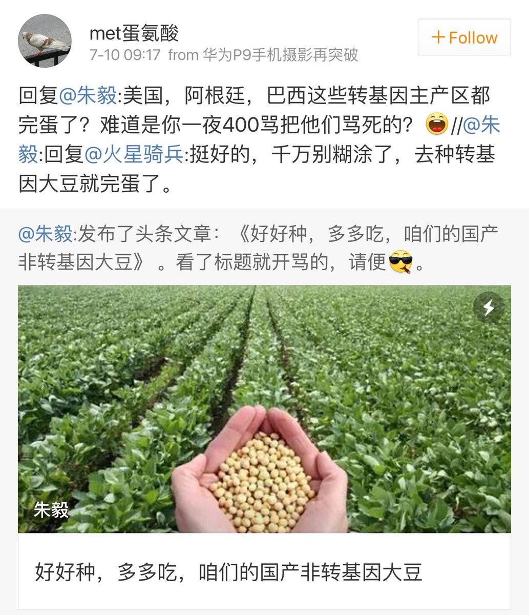 方舟子 ?@fangshimin Jul 10 朱水货博士改公开反转基因了?这就对了,早说了,这些卖检测转基因试剂的其实是扭扭捏捏在反转基因,这就是证明。https://pbs.twimg.com/media/Cm_hQbmVMAEVMeE.jpg