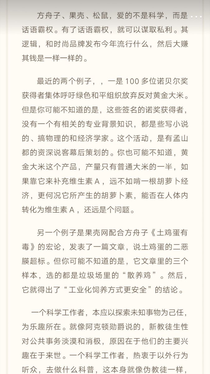 方舟子 ?@fangshimin Jul 10 人民日报官微小编碰巧抄到比较靠谱的东西,这下惹祸了,大帽子扣过来。https://pbs.twimg.com/media/CnD2BXFUkAAoZnm.jpg