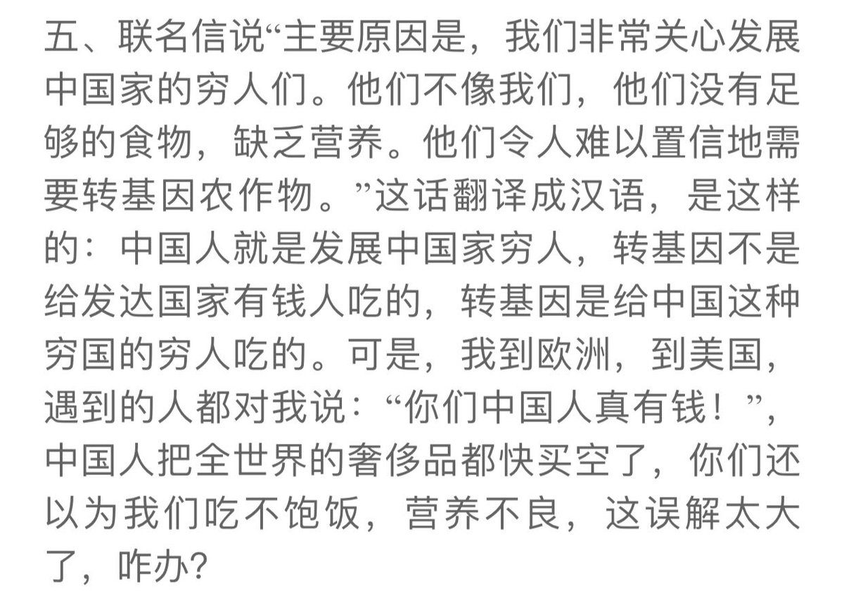方舟子 ?@fangshimin Jul 6 诺奖得主联名信里并没有崔永元引的这段话,是诺奖得主另外给了崔永元一个版本?但转基因作物尤其是金大米的确对穷人的益处更大。崔永元既然认为中国没有穷人了,人人吃得饱饭、不会营养不良了,他怎么还要募捐“给孩子加个菜”?难怪有人质疑其动机。https://pbs.twimg.com/media/CmurLQRVYAApZGT.jpg