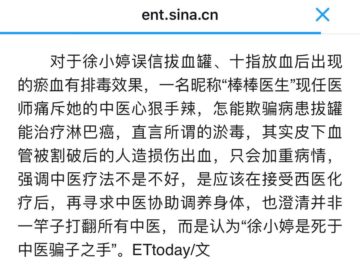 方舟子 ?@fangshimin Sep 11 媒体有意无意看不懂棒棒医生的讽刺,说棒棒医生“强调中医疗法不是不好”,那么旗帜鲜明地批批中医还是必要的。棒棒医生:徐婷就是死于中医http://blog.sina.cn/dpool/blog/s/blog_48f8a5230102x0p6.html …https://pbs.twimg.com/media/CsDqhjVVIAAqz8_.jpg