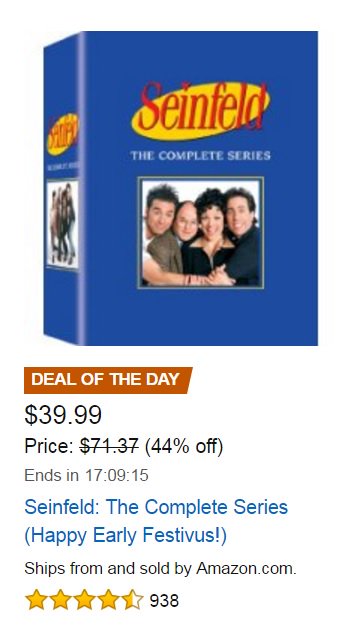 方舟子 ?@fangshimin Dec 3 亚马逊上《善非尔德》DVD今天在大降价,还是入手一套。我一直等着它出蓝光版,很奇怪为什么还不出。https://pbs.twimg.com/media/CywpfZqUsAEF3c9.jpg
