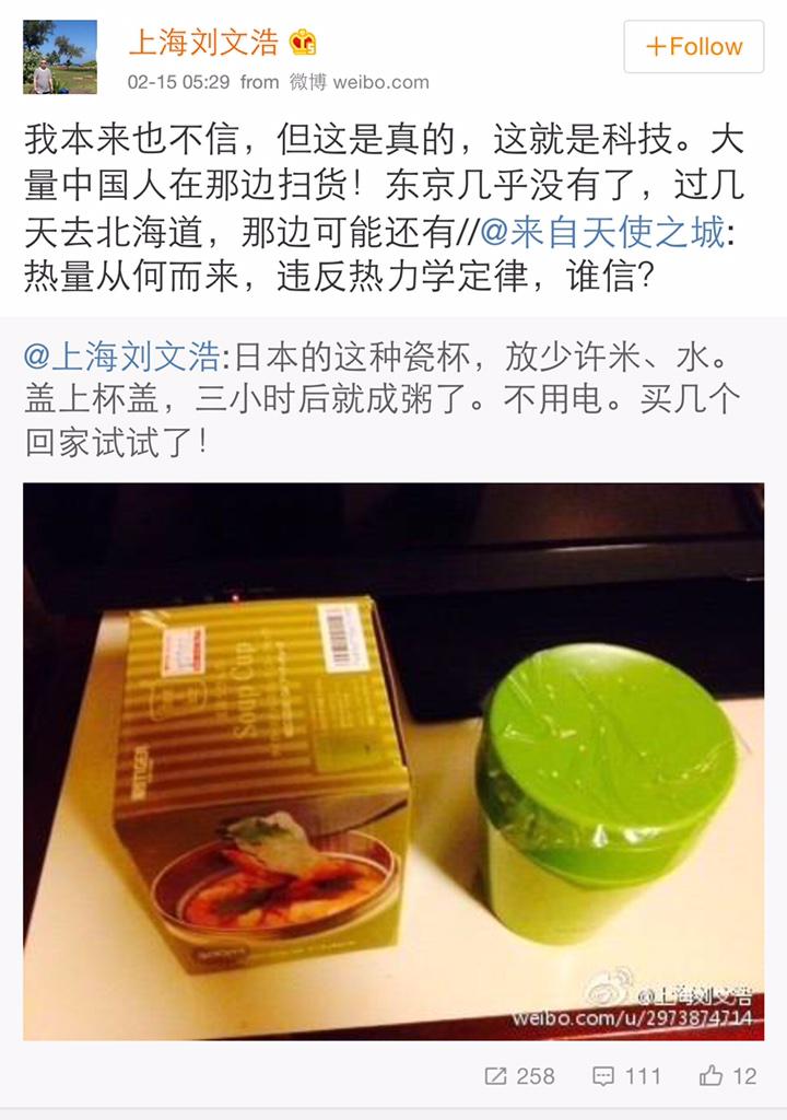 方舟子 @fangshimin · Feb 15如果加的是开水,任何保温瓶都能办到。如果加的是冷水,那是上帝显灵。总之都与高科技无关。这一阵网上突然大肆吹捧日本日用品,貌似有推手。https://pbs.twimg.com/media/B98Y6V0CEAAH0Gr.jpg:large