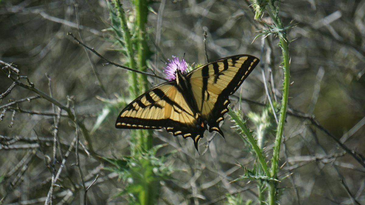 方舟子?Verified account @fangshimin Apr 27More经常见到西部虎凤蝶(western tiger swallowtail)飞来飞去,今天终于遇上一只停在哪里让我任意拍。虎凤蝶很好认,图案像虎纹。这是北美西部的种,非常活跃,很少停下。北美东部另有东部虎凤蝶,图案有所不同。https://pbs.twimg.com/media/D5NaDybUYAA8lIm.jpg