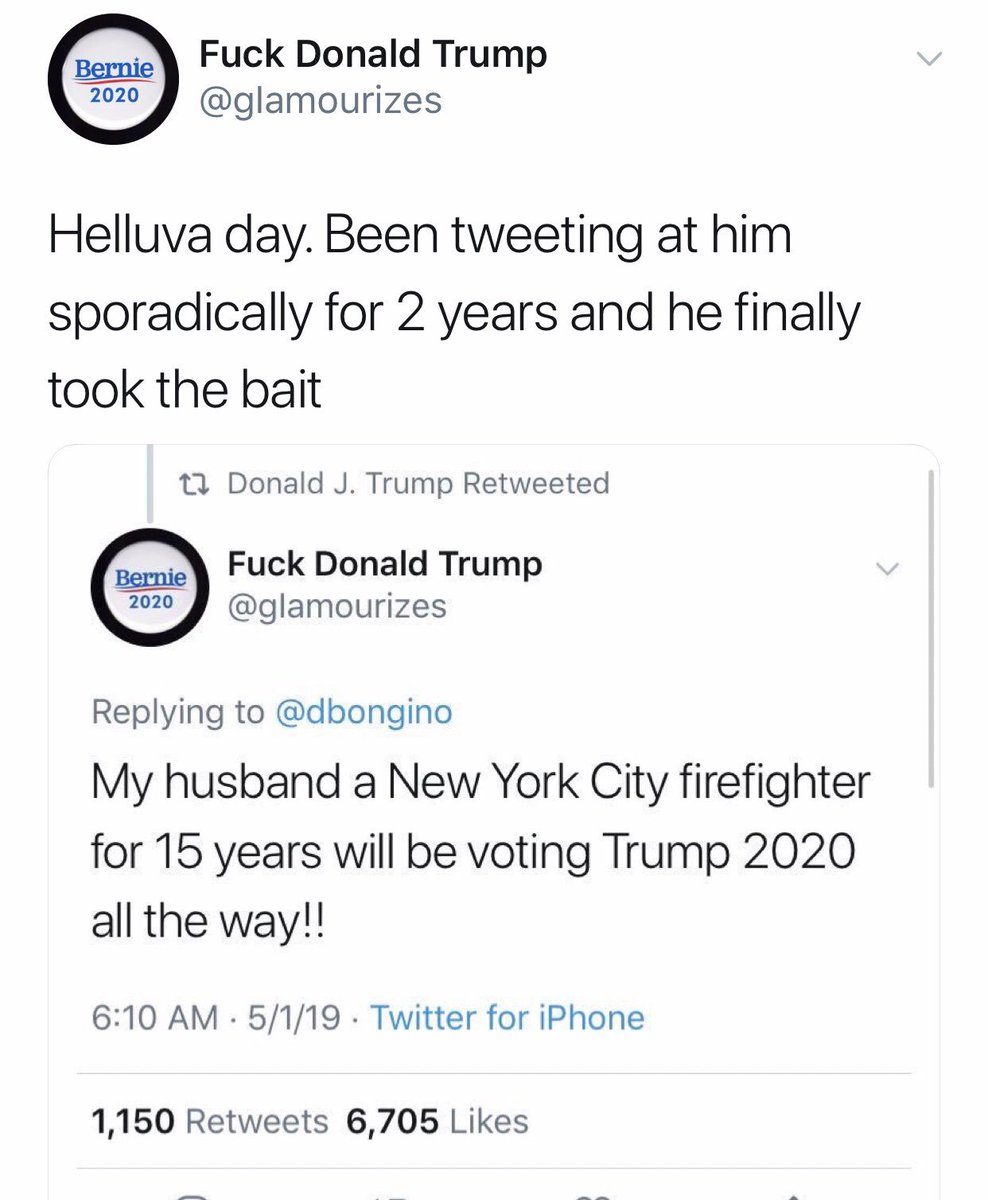 方舟子?Verified account @fangshimin May 2More这个桑德斯的支持者搞了一个骂川普的ID,两年来天天在川普推特下假装支持他,昨天川普发疯似的连发80多条推特,也转了这个人的“支持”推特,终于上钩了。钓了两年鱼,不容易啊。https://pbs.twimg.com/media/D5nnldpV4AIo5LY.jpg