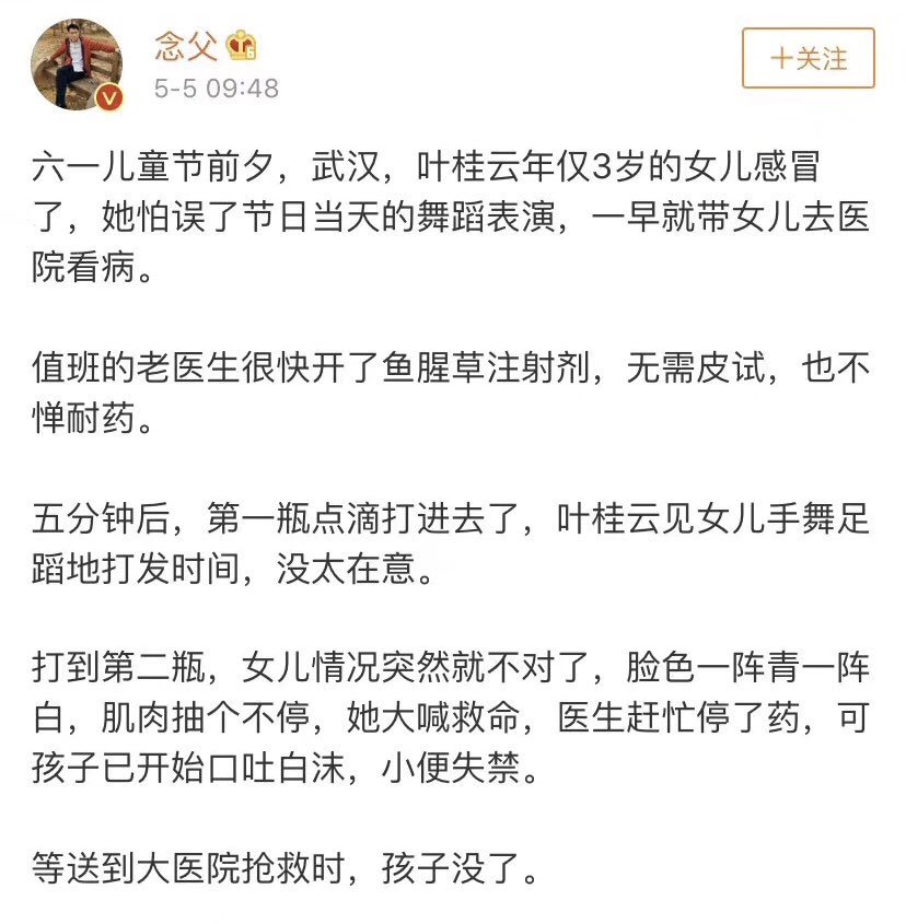 方舟子?Verified account @fangshimin May 6More感冒去打点滴本来就是胡闹,去打中药注射液则是在赌命,搞不好就这样赌输了,变成大悲剧。https://pbs.twimg.com/media/D57vq4SUcAATfDs.jpg