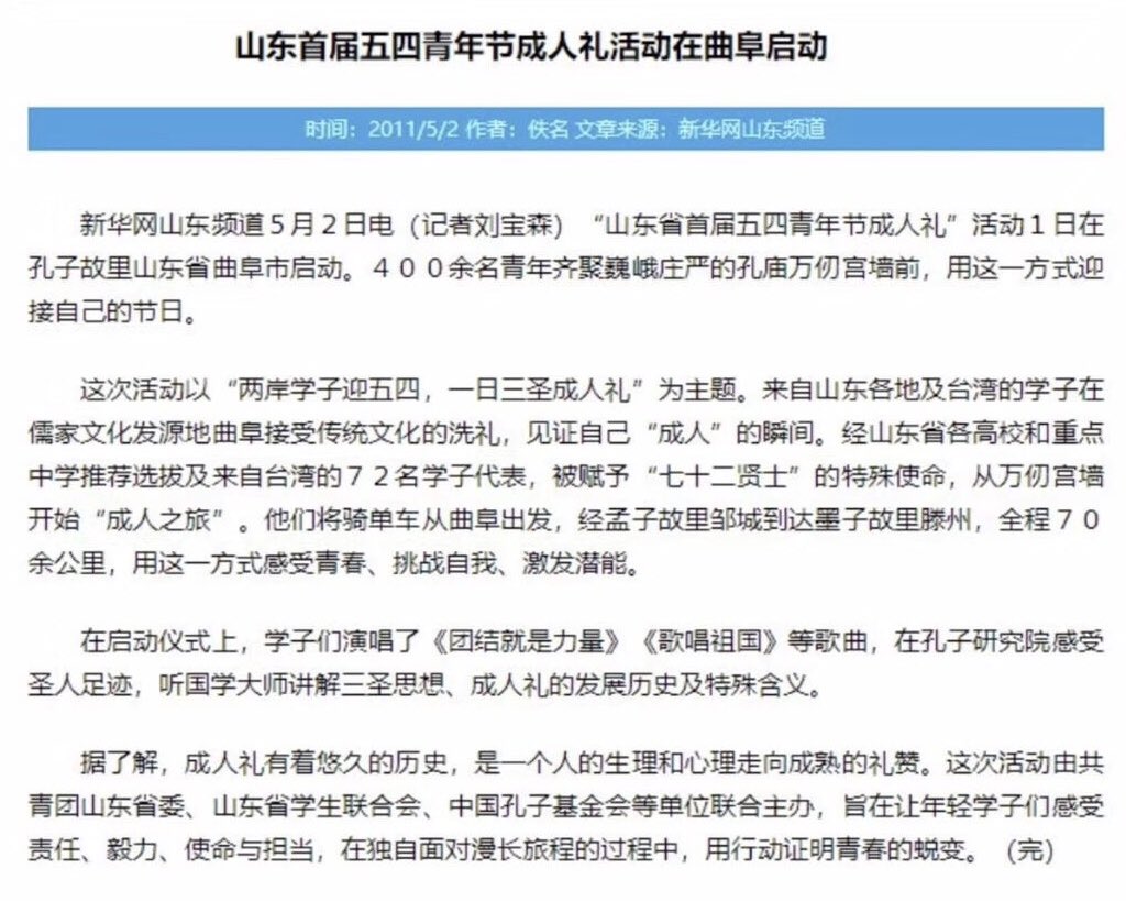 方舟子?Verified account @fangshimin May 8More山东首届五四青年节成人礼活动在孔庙举行,听国学大师讲解三圣思想…我记得五四运动的口号之一就是“打倒孔家店”,不是入住孔家店。https://pbs.twimg.com/media/D6BsgnJUwAArAMl.jpg
