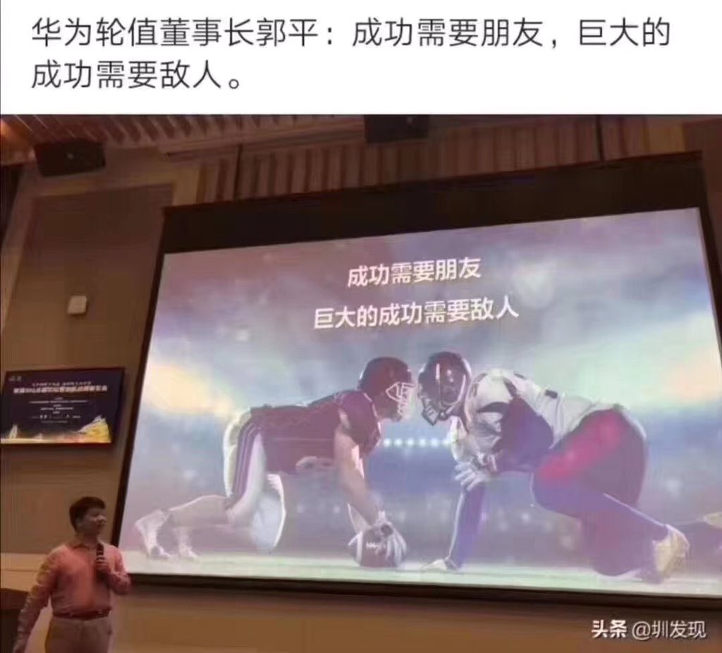 方舟子?Verified account @fangshimin May 24More华为轮值董事长郭平:“成功需要朋友,巨大的成功需要敌人。”看来以前华为广交朋友有钱让外国人赚只能算是成功,接下来就会有巨大的成功了。https://pbs.twimg.com/media/D7ZMdvDUEAE5F-g.jpg