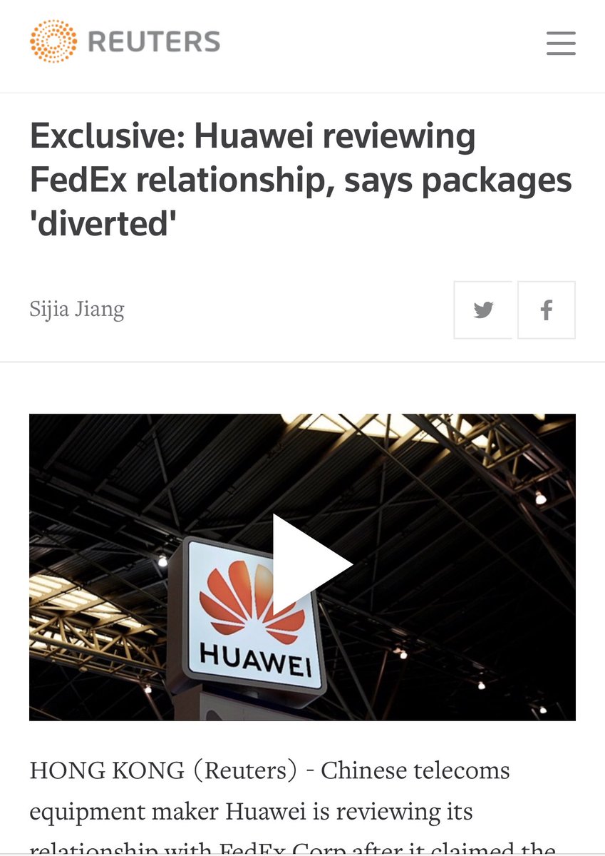 方舟子?Verified account @fangshimin May 29More听说联邦快递把华为寄的几个包裹转运到美国去了。联邦快递是华为合作伙伴,华为每天让它寄多少包裹?有几万个吗?据说中国快递那么牛,为什么不找中国快递公司当合作伙伴?又是为了交美国朋友特地让美国人赚钱?https://pbs.twimg.com/media/D7yaYQ7UcAE0bPp.jpg