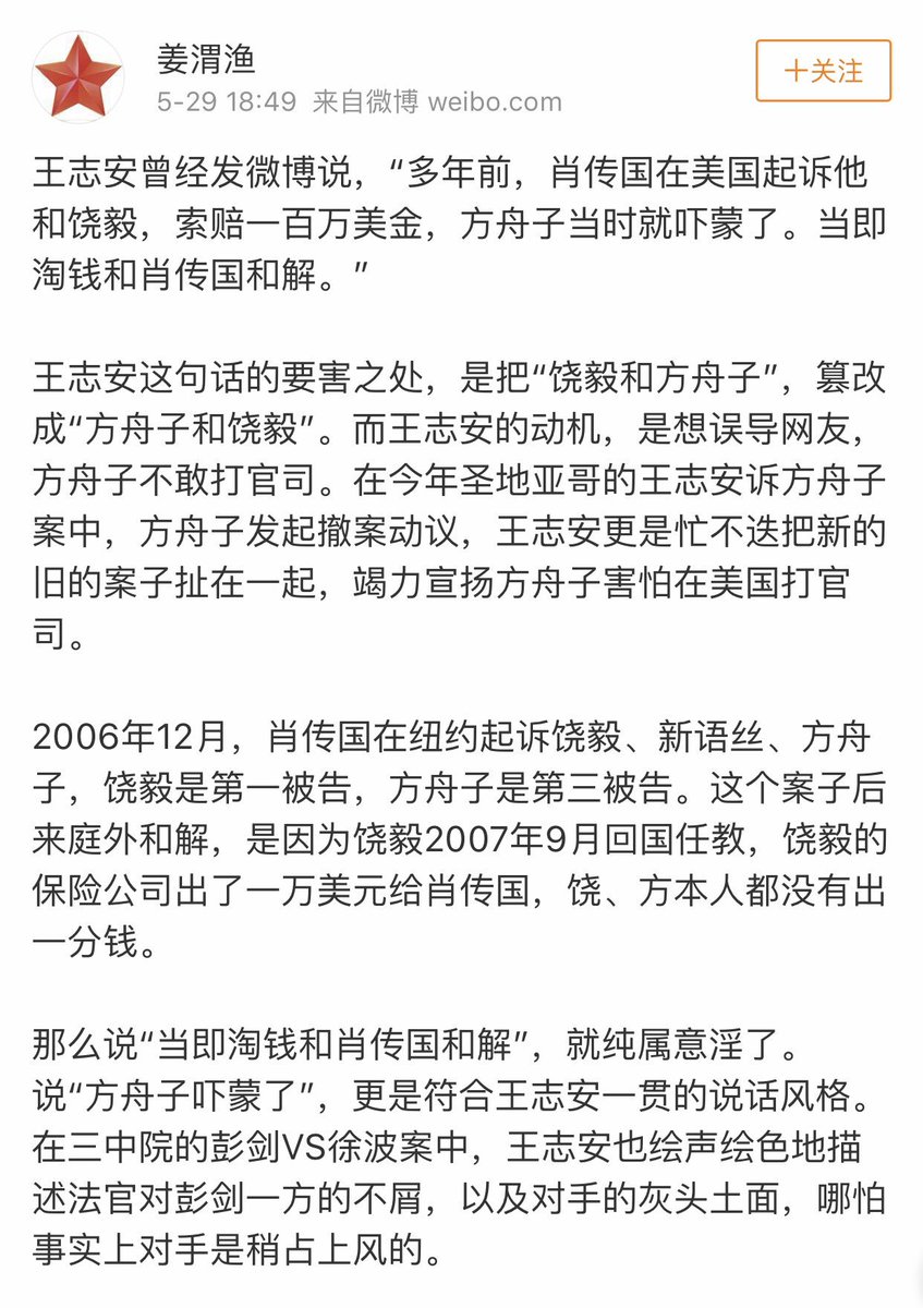 方舟子?Verified account @fangshimin May 26More李长青:我所知道的王志安诬告团https://mp.weixin.qq.com/s/K2Nwl5rycqdMN4YGo9P2tA …