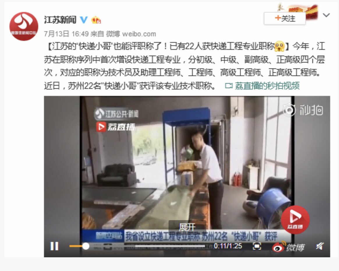 方舟子@fangshimin·Jul 14快递成了工程,快递员能够获得相当于各级工程师的快递工程专业职称,接下来也应该可以去当中国工程院院士了。中国不评职称的职业还有吗?https://pbs.twimg.com/media/D_fxAs0UYAIjYMJ?format=jpg&name=medium