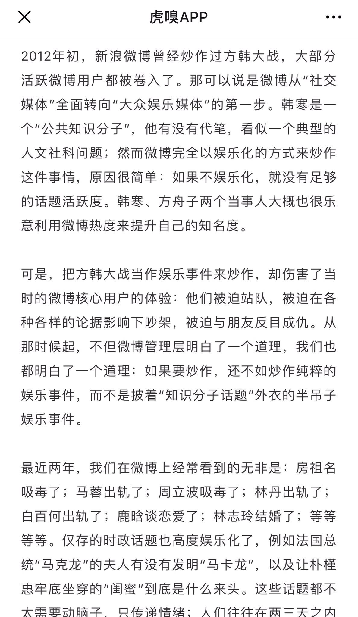 方舟子@fangshimin·Jul 29事件才过去几年,“方韩大战”已经成了新浪微博的炒作了,而且我和小韩寒还需要借此提升知名度呢。当时新浪微博负责人为了保护韩寒,给我打电话希望我放韩寒一马,之后又采取各种方法限制我揭露韩寒的文章的传播,有这么炒作的吗?https://pbs.twimg.com/media/EAn_vDkVAAAXC7t?format=jpg&name=4096x4096