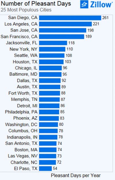 方舟子@fangshimin·Jul 30美国25个人口最多的大都市天气排名,第一名当然是圣地亚哥了,把第二名洛杉矶拉出一大截。前四名都在加州,又把第五名佛罗里达杰克逊维尔拉出一大截。https://pbs.twimg.com/media/EAw-p4lVUAAwVmA?format=jpg&name=small