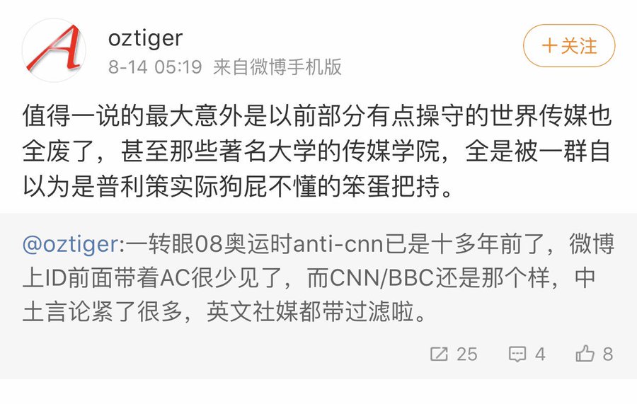 方舟子@fangshimin·Aug 16Replying to @Gx1GOpMZzsYtLqx我哪有你聪明,一眼看穿了所有的西方媒体都不放过黑中国人的机会,以为所有的西方媒