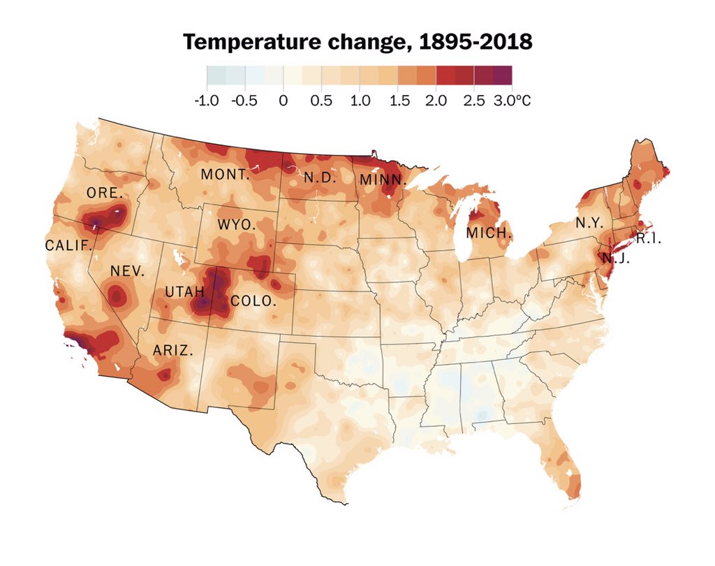 方舟子@fangshimin·Aug 13从1895年到2018年,美国年均气温升高1摄氏度,有些地方升高近3摄氏度。https://pbs.twimg.com/media/EB6IOB1XUAUBNvw?format=jpg&name=medium