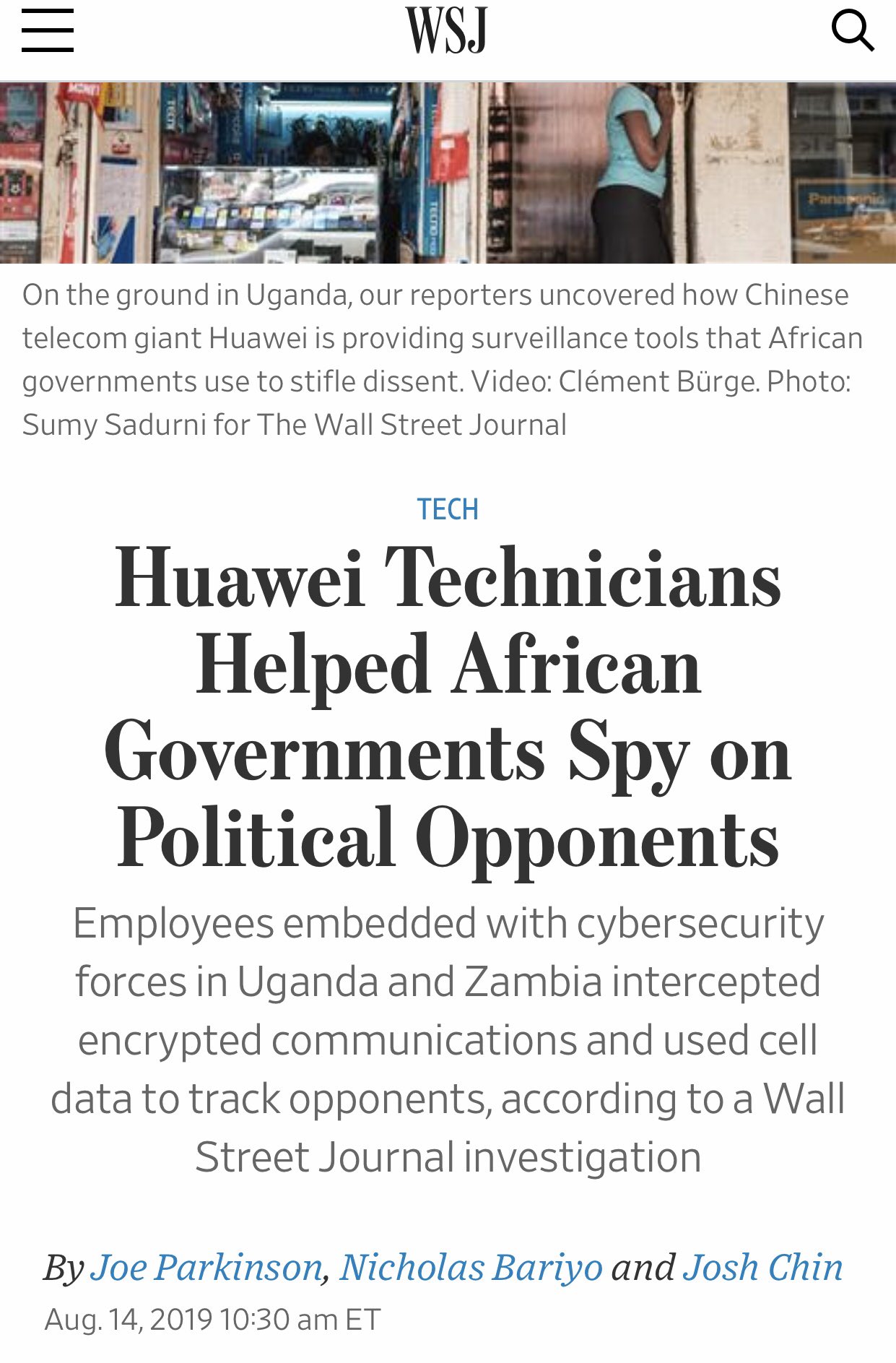 方舟子@fangshimin·Aug 14《华尔街日报》辱华了,长篇报道造谣华为员工在非洲帮助维稳,华为公司已义正词严地发表声明否认,华为海军快去淹了《华尔街日报》。https://pbs.twimg.com/media/EB_SRzvUIAAVH8J?format=jpg&name=large