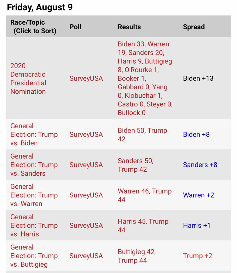 方舟子@fangshimin·Aug 11最新的民意调查结果,桑德斯和拜登一样都领先川普8%。接下来的一年结果当然还会变化,但至少说明桑德斯现在已被主流社会接受,不再和四年前一样被认为激进。https://pbs.twimg.com/media/EBuK0RlUcAAXj7d?format=jpg&name=900x900