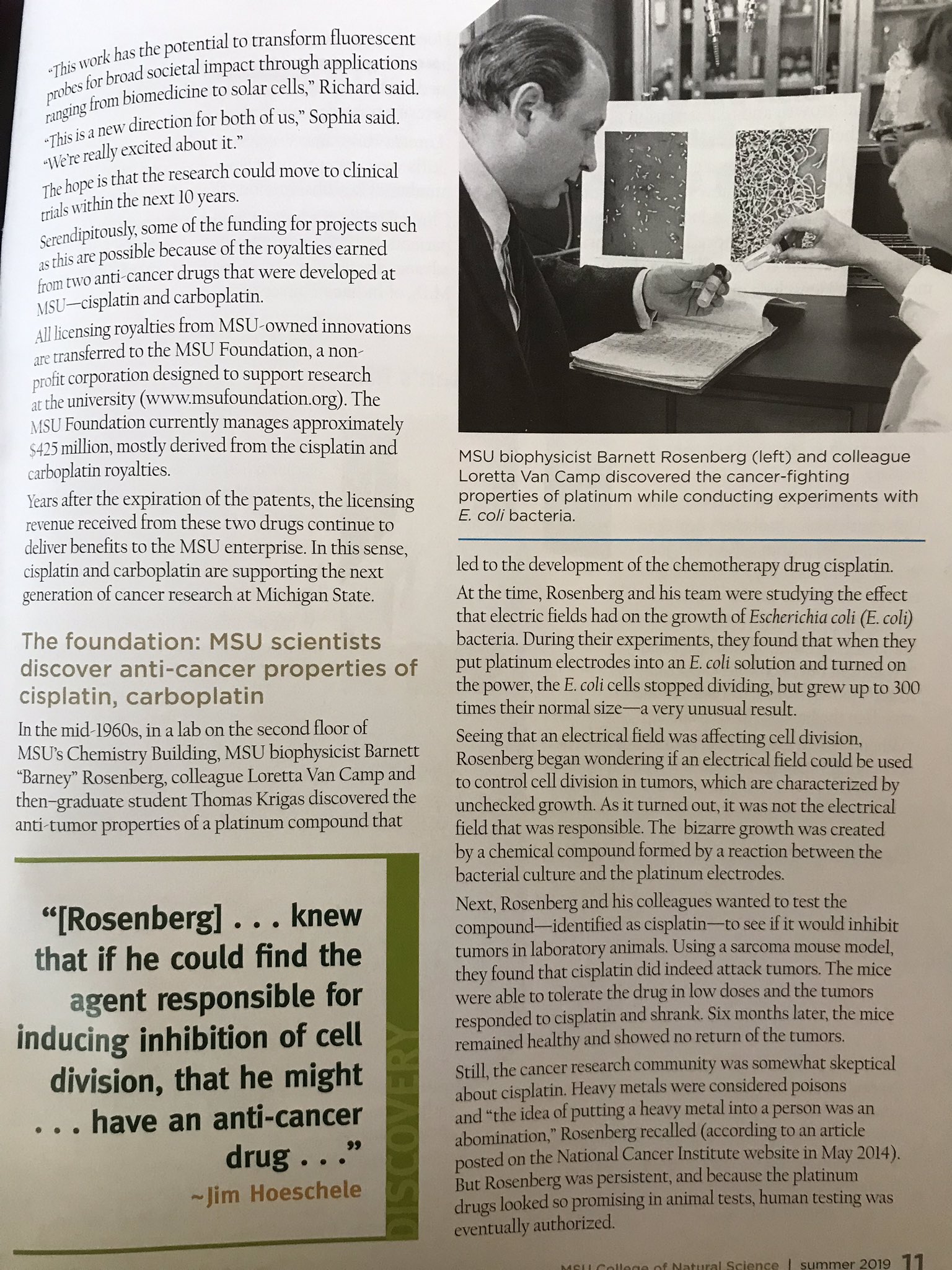 方舟子@fangshimin·Aug 11史上最成功的化疗药之一顺铂(治疗睾丸癌的成功率超过95%)是密歇根州立大学研究人员无意中发现的,专利已过期,但用其专利费建立的基金会还在支持着本校癌症研究,不过到现在还没能研究出同样成功的药物。https://pbs.twimg.com/media/EBufnvMVAAAa-tV?format=jpg&name=4096x4096