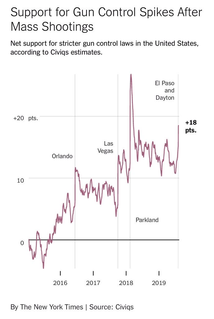 方舟子@fangshimin·Aug 11每次美国发生伤亡惨重的大型枪击案,支持控枪的人数都会急剧上升,过一段时间后就下降。但总的来说支持控枪的人数还是越来越多,已占多数。https://pbs.twimg.com/media/EBvsT_lUwAEw6Ff?format=jpg&name=medium
