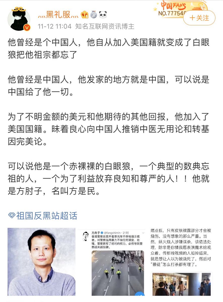 方舟子@fangshimin·Nov 14有组织的“暴徒”。https://twitter.com/i/status/1195191600839708672