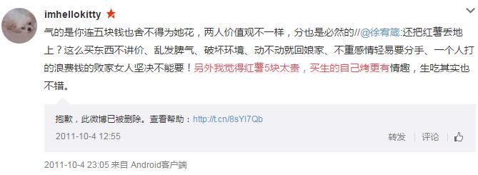 方舟子 @fangshimin · Mar 29徐壕吝啬到觉得五块钱的烤红薯太贵,要买生的自己烤。还有人妄想他会无条件赠送豪车呢,他连几块钱的红薯、几十块钱的饭钱都计较,十几万的税都舍不得出,还真送你一百多万的豪车?我早说了,有些人再有钱也改不了骨子里的穷相。https://pbs.twimg.com/media/CBT4DutUIAAx-6Y.jpg:large