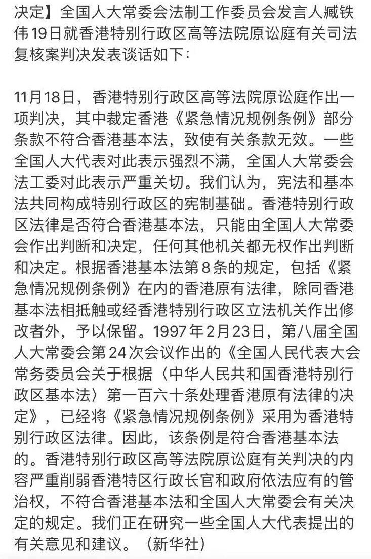 方舟子@fangshimin·Nov 18我还以为至少会走一下上诉终审法院的程序再由人大出面,没想到迫不及待就祭出人大释法这个大神器。https://pbs.twimg.com/media/EJsgVzVUYAE_TVp?format=jpg&name=medium