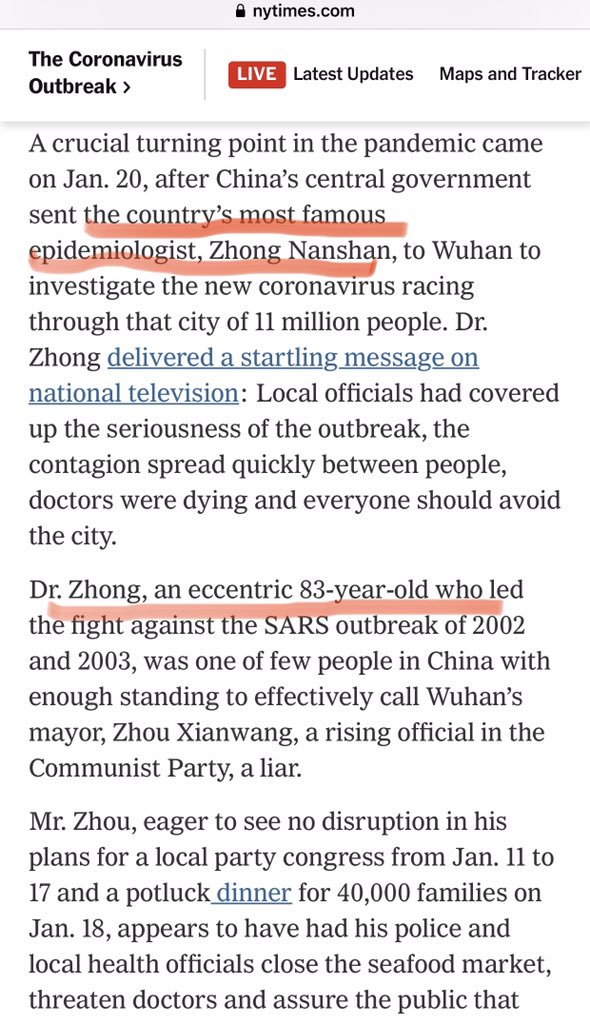 方舟子@fangshimin·Apr 17纽约时报说钟南山是中国最著名的流行病学家,不知道他只是呼吸科临床医生,连流行病学家都算不上吗?难道中国连个流行病学家都没有?还说钟南山是个性格古怪的人,这是好话还是坏话?https://pbs.twimg.com/media/EV2gQGCVAAAxrX5?format=jpg&name=medium
