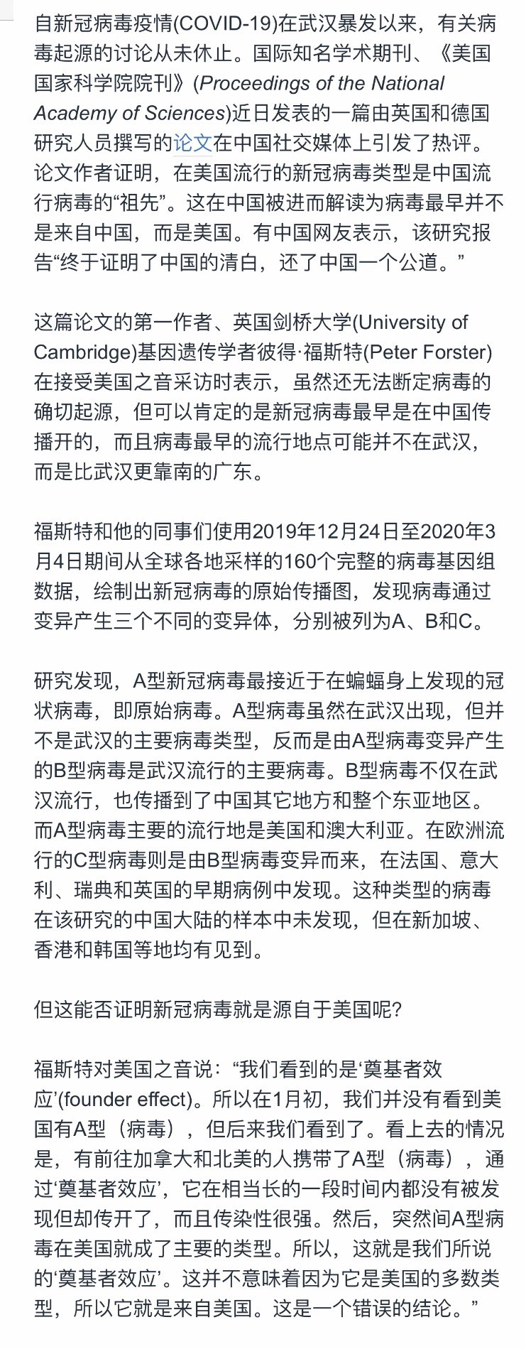 方舟子@fangshimin·Apr 16其进化树研究在墙内被歪曲成证明新冠病毒源于美国的剑桥大学教授说,新冠病毒肯定最早是在中国传开的,而且最早的流行地点可能是在广东。https://pbs.twimg.com/media/EVtPTMLU4AA9yT8?format=jpg&name=large