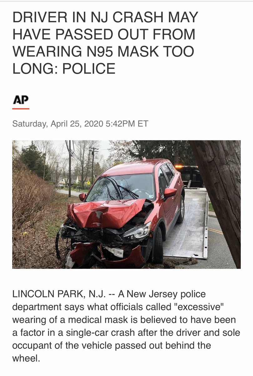 方舟子@fangshimin·Apr 29新泽西有个人开车还戴N95,憋气晕过去,撞树了。这个人不仅担心空气中到处有新冠病毒,而且佩戴N95很密合。https://pbs.twimg.com/media/EW1J3igUwAI_sP2?format=jpg&name=medium