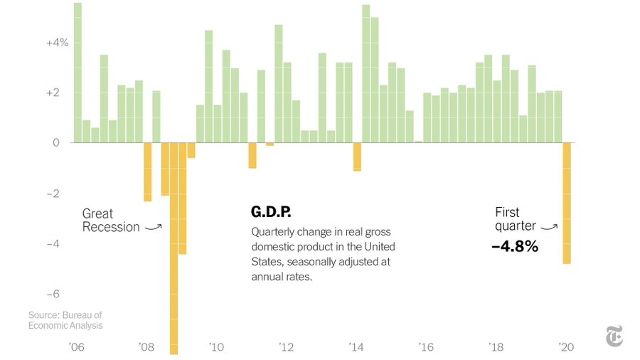 方舟子@fangshimin·Apr 30今年第一季度美国GDP负增长4.8%,为金融危机以来最低。川普要每年增长3%以上的海口更没法实现了。https://pbs.twimg.com/media/EW5h0KtUMAA-c3V?format=jpg&name=900x900
