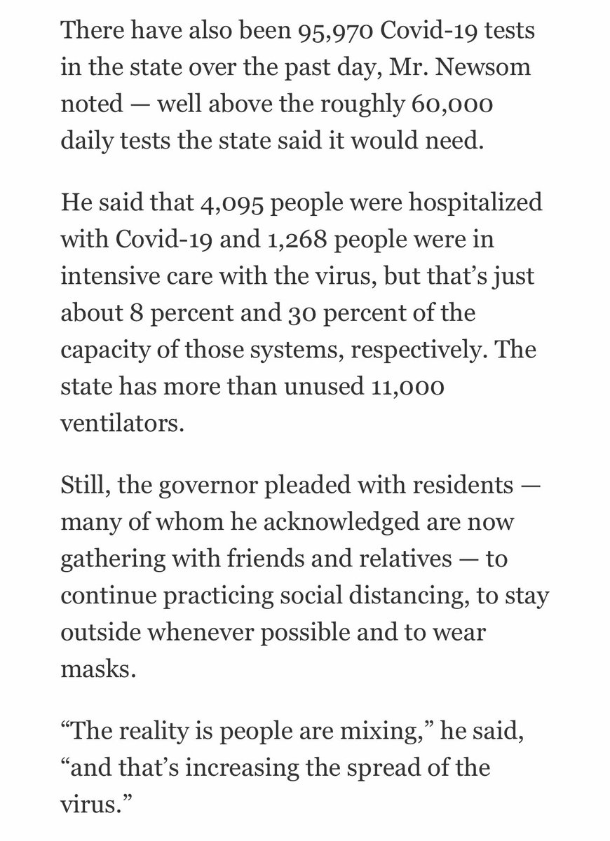 方舟子@fangshimin·Jun 26拉平曲线的目的不是为了减少总发病数,而是为了减缓病毒传播,避免医院超负荷而增加死亡。加州重开后人们逐渐恢复工作、生活,病例必然会增加,但目前新冠感染住院人数和进ICU人数只占负荷的8%和30%,还有11000台呼吸机空着,离超负荷远着呢,怎么州长又紧张起来?忘了拉平曲线的初衷了?https://pbs.twimg.com/media/EbfCov0VAAEwzj3?format=jpg&name=medium