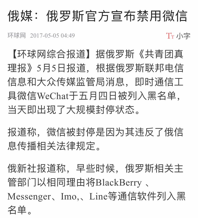 方舟子@fangshimin·Aug 8俄国政府早在2017年就禁用微信,也没见胡锡进或某个发言人为此要向俄国讨公道。真是觉得美国政府好欺负?https://pbs.twimg.com/media/Ee7Tj_uU8AAeBTM?format=jpg&name=900x900