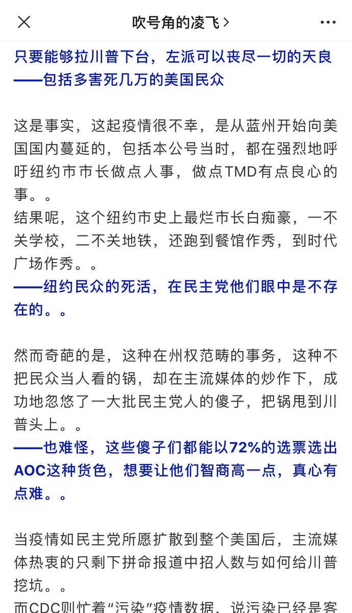 方舟子@fangshimin·Aug 4这个在纽约唐人街开电脑店的“美国问题专家”说,民主党“丧尽一切的天良”多害死了几万美国民众。这些华人川粉比他的教主还敢说,川普只是矢口否认美国多死的人,因为连他也知道想甩锅给民主党脑子正常点的都不会信。https://pbs.twimg.com/media/Een1vdcUMAADGkK?format=jpg&name=medium