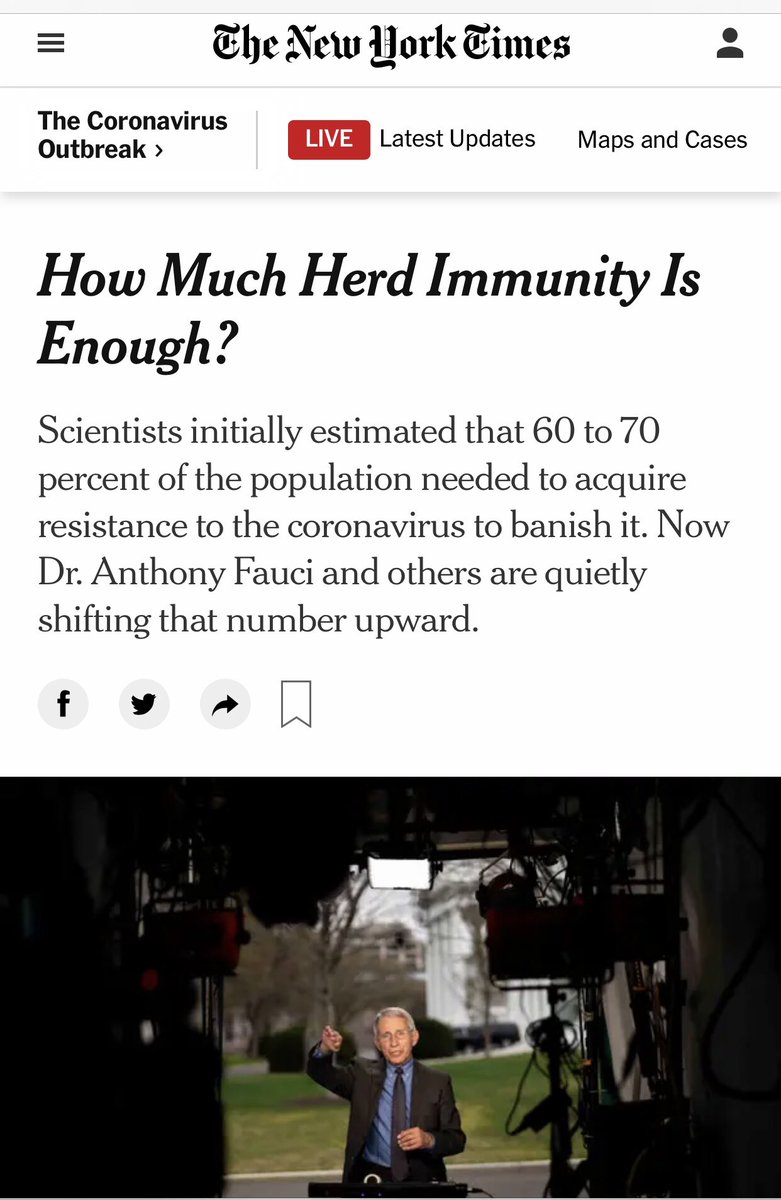 方舟子@fangshimin·Dec 24, 2020需要60-70%的人对新冠病毒有免疫力才能形成群体免疫,这是根据模型推算R0进而算出来的,模型当然可能有误,但现在福奇说需要80-90%有免疫力才能形成群体免疫,有新模型新证据吗?没有,他说是凭他的感觉,而且认为美国人可以接受更高数字了。这像是科学家说的话吗?越来越像钟南山了,除了不带货。https://pbs.twimg.com/media/EqDpZAkUcAEsIBR?format=jpg&name=medium