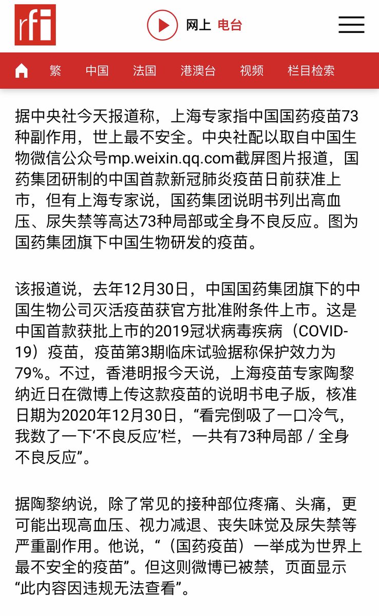 方舟子@fangshimin·Jan 2在国药集团宣布其灭活疫苗申请上市第二天,中国国家药监局就宣布批准其上市,这种“中国速度”创了世界纪录。方舟子揭假:中国国家药监局悍然批准国药集团疫苗上市https://youtu.be/62AnYyz4eVQ