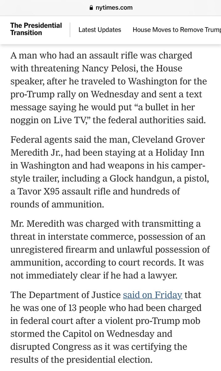 方舟子@fangshimin·Jan 10川卫兵攻打国会那天,科罗拉多有一个人带了三把枪和几百发子弹赶往华盛顿,给朋友发短信说要在电视上枪杀佩洛西。由于车出了问题,赶到华盛顿时暴乱结束了,然后被联邦调查局抓了,今天和12个攻打国会的川卫兵一起被起诉。https://pbs.twimg.com/media/ErbzRx7VEAMV2np?format=jpg&name=medium