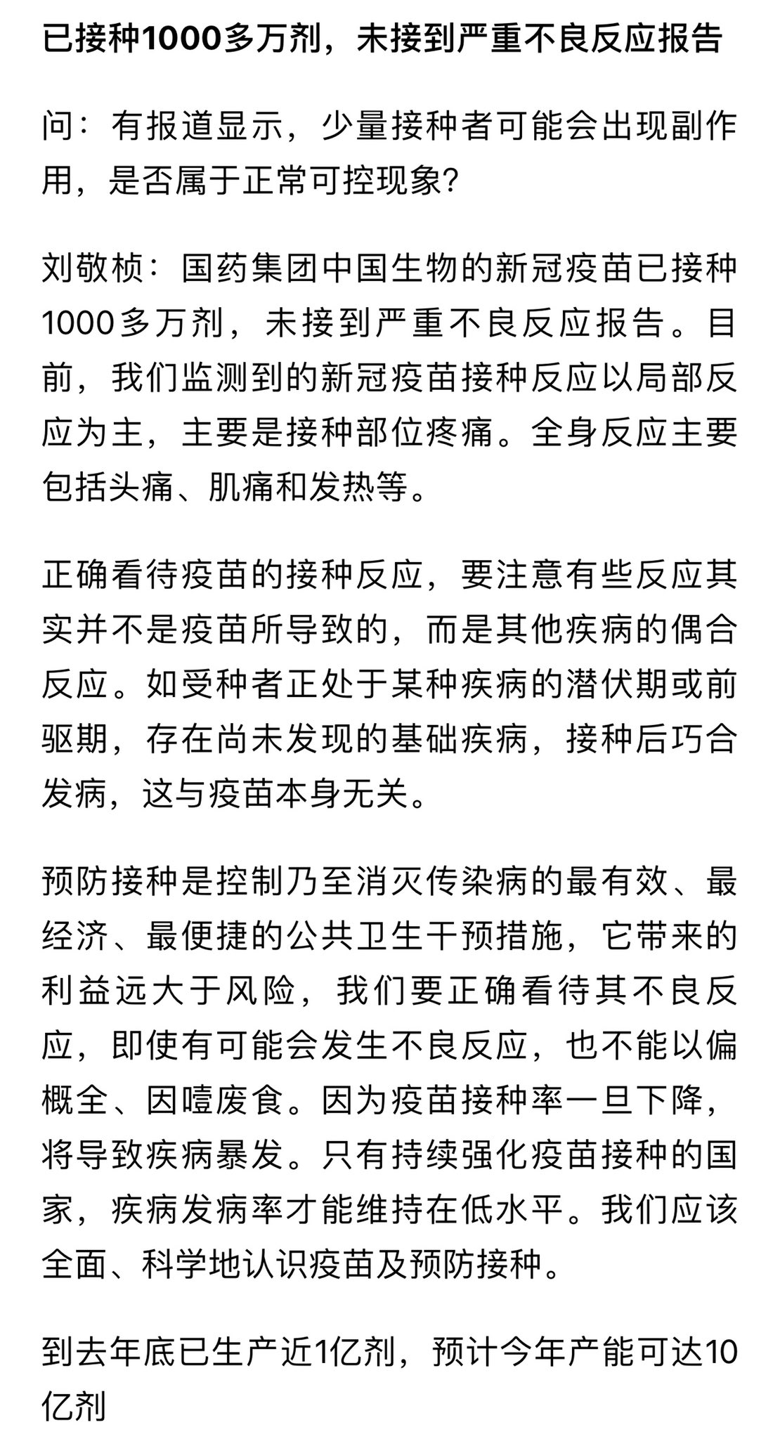 方舟子@fangshimin·Jan 15如果接种1000多万剂疫苗连一例严重不良反应都没有,那打的不是疫苗,而是生理盐水。https://pbs.twimg.com/media/ErzL4zGUwAE16_8?format=jpg&name=large