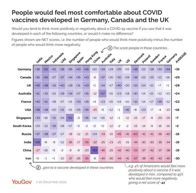 方舟子@fangshimin·Jan 31【疫苗接种者中和抗体滴度与康复者血清中和抗体滴度比值】莫德纳:4.13,Novavax:3.97,辉瑞:3.84,俄国:1.49,牛津:~1.12,印度:~1.0(comparable),科兴:~0.82,国药北京:0.64,国药武汉:0.56。