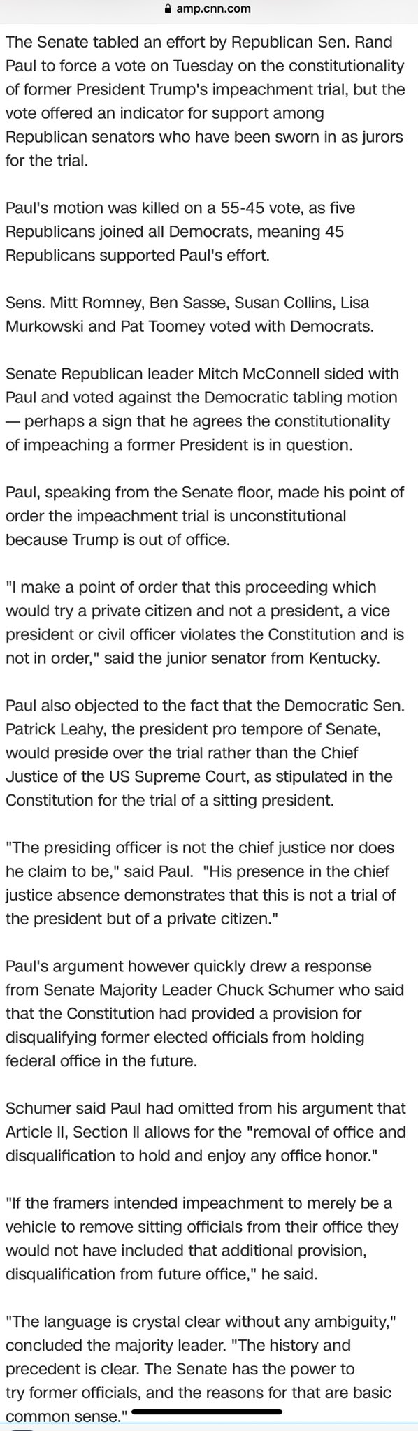 方舟子@fangshimin·Jan 30参议院对川普的审判定于2月9日开始,川普后天要递交答辩,他的律师团却集体辞职,因为川普要求律师以选举舞弊作为辩护理由,而律师们只愿意争辩审判已下台的总统违宪。川普不如自己出庭去辩,反正这不过一场戏,不管谁出庭大多数共和党参议员都会保他。https://pbs.twimg.com/media/EtCFPu3VoAE_9Ew?format=jpg&name=smallhttps://pbs.twimg.com/media/EtCFPu5UwAEPkzx?format=jpg&name=small