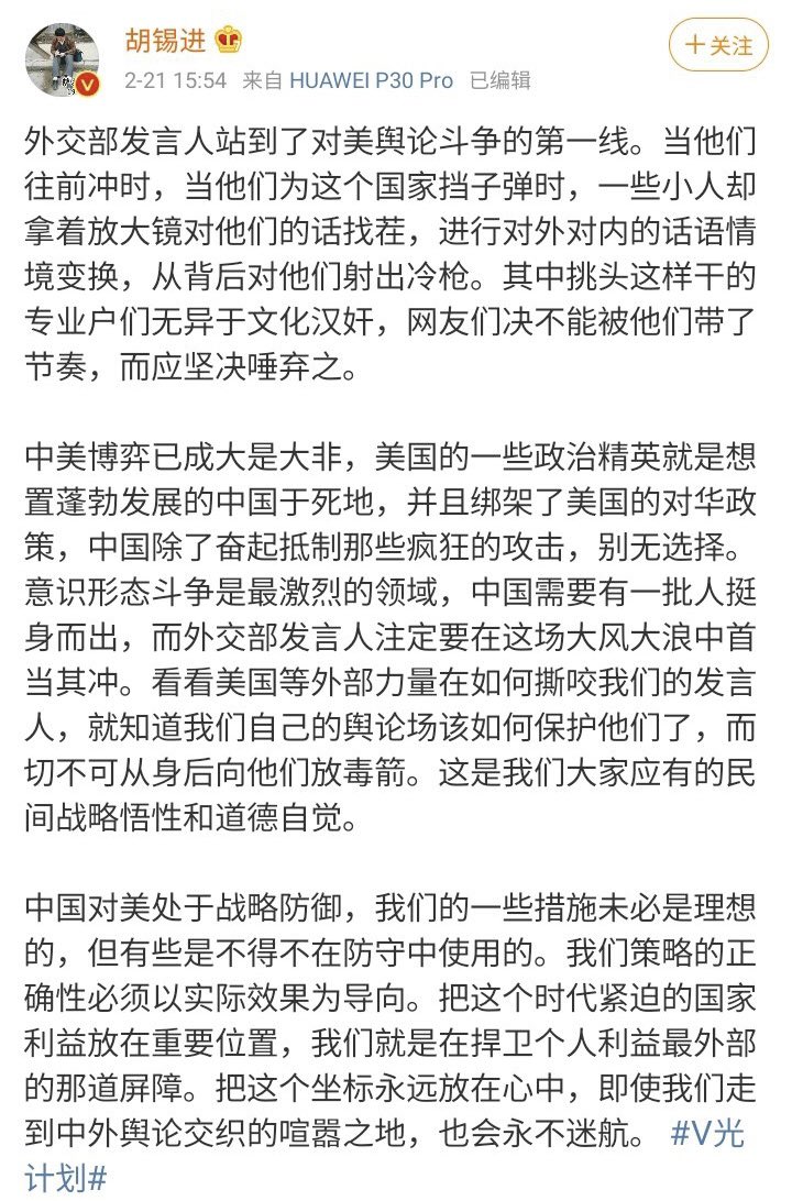 方舟子@fangshimin·Feb 23胡锡进说了,中国人敢批中国外交部发言人就是汉奸。按他的逻辑,美国人敢批美国政府发言人就是美奸,敢批美国总统更是美奸。如此说来,川普执政时大部分美国人都是美奸,现在估计也有百分之三、四十美国人是美奸。人们该唾弃的,是胡锡进、战狼外交官这种自诩代表国家利益其实危害国家利益的历史罪人。https://pbs.twimg.com/media/Eu5ZMPGUYAAH5B0?format=jpg&name=medium